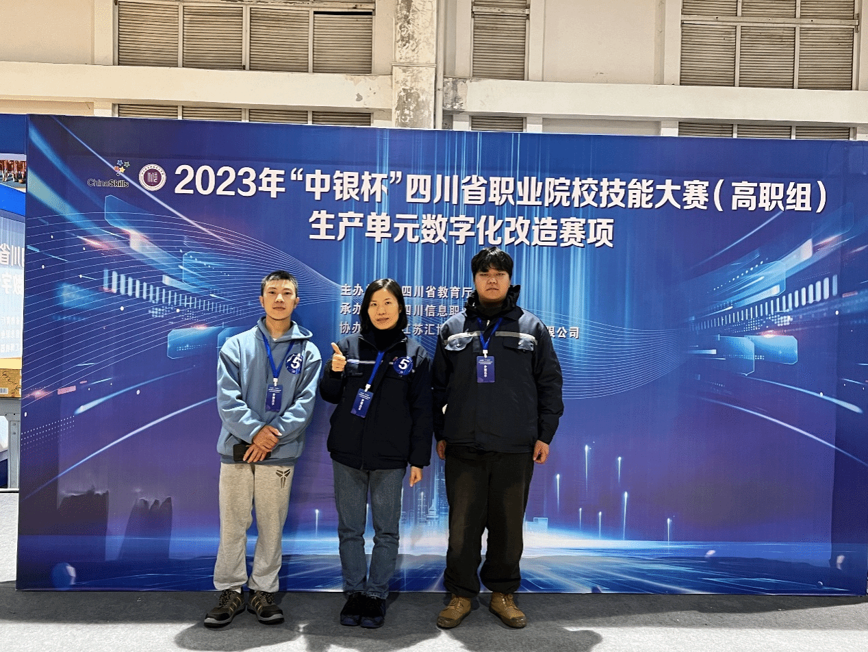 11月17日—20日,由四川省教育厅主办,四川信息职业技术公司承办,江苏汇博机器人技术股份有限公司协办的2023年“中银杯”四川省职业院校生产单元数字化改造赛项成功举办(师生同赛),本次赛项共33支队伍参赛。三亿机电一体化专业负责人蒋佳芯、工业机器人212班明翼、机电一体化212班王祖德参加该赛项。并获得了二等奖的成绩。