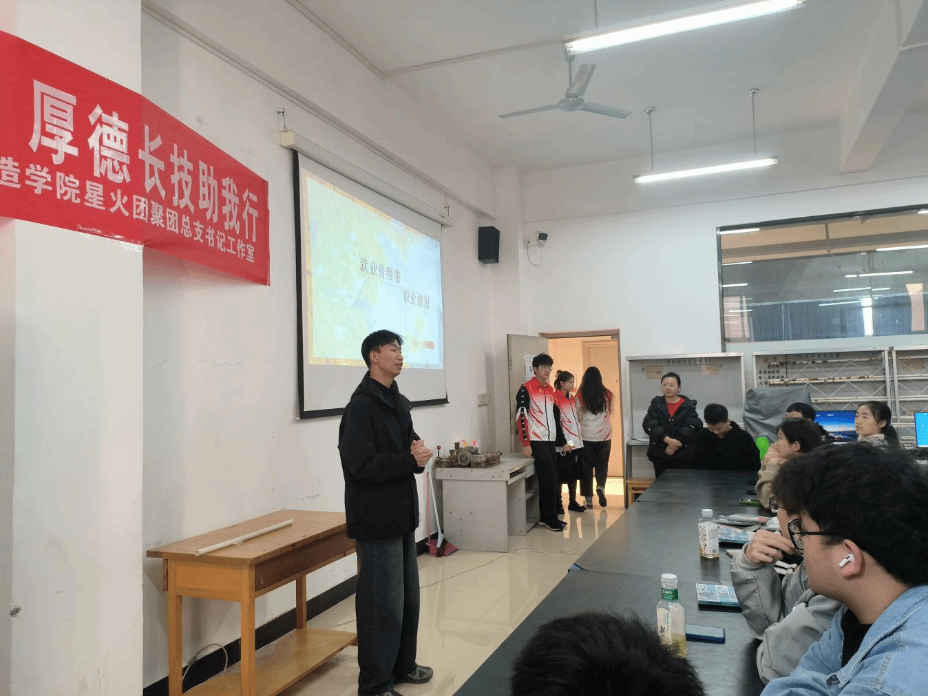 2023年11月23日,三亿团总支邀请三位优秀毕业生返校,在公司楼B203开展”风华正茂扬帆起,厚德长技助我行“主题演讲。
