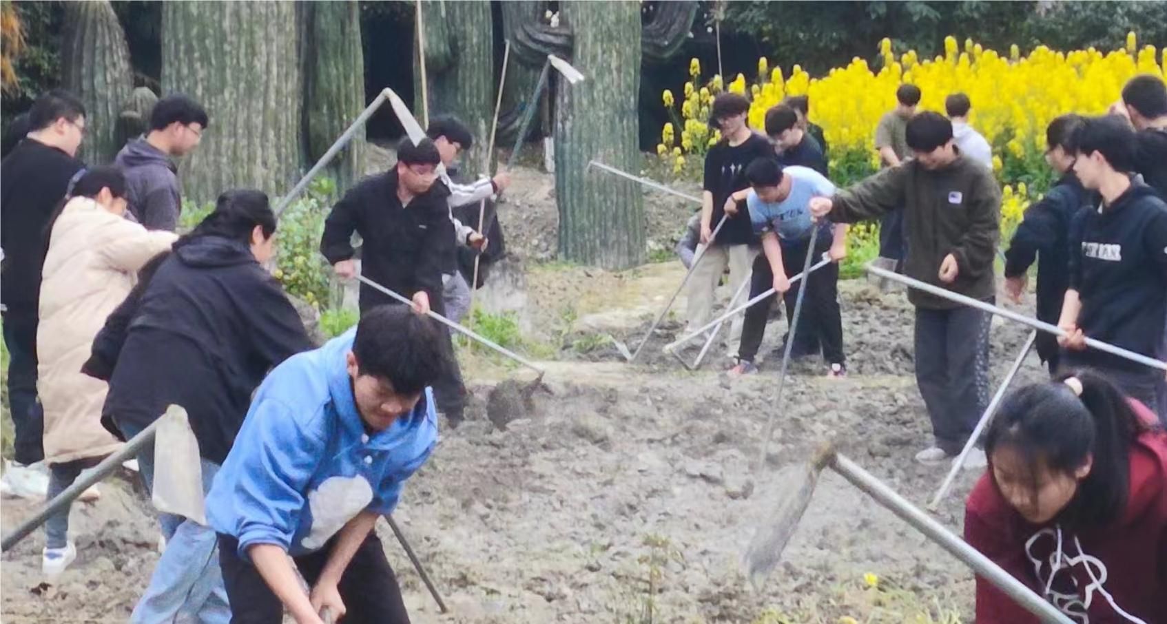 由于种植区域的土壤先天条件不是很好,虽然面积不大,但是参与本次土壤改良的34位同学依旧埋头苦干了一个半小时,才将所有的“紫美人”种植区域打理出来。在春日鲜花的映衬下,基地显得更加美丽而富有生机。