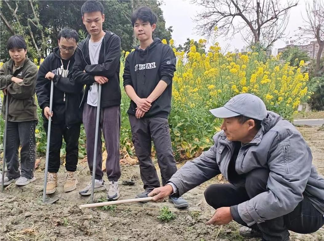 在公司的2024年春季玉米种植计划中,三亿有幸承担了新型品种“紫美人”玉米的种植任务。良好的土壤质量对于农作物的生长和发育至关重要。为了更好地种植出新型玉米,劳动教育导师对员工们进行了关于土壤改良的理论教学和操作指导,使同学们意识到了土壤改良对作物种植的重要性。大家一起将公司的种植区域进行了二次翻土,同时将有机肥和复合肥逐一添加到后期玉米生长的土坑中。基地土壤在后期雨水和土壤微生物的共同作用下,将更有利于“紫美人”玉米的发芽和成长。