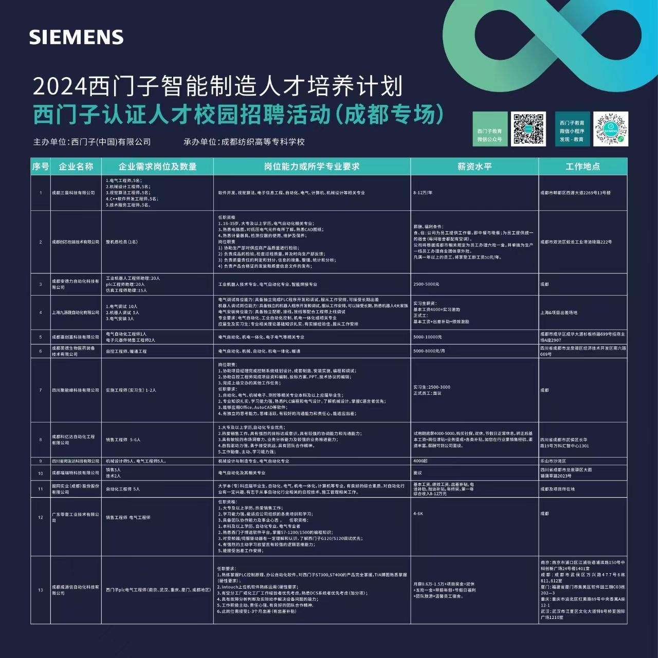 招聘会现场,西门子产业生态圈13家企业带来了120余个就业岗位,涵盖了机电一体化、机械工程、电气工程、自动化等多个专业领域,其中85%以上工作岗位在四川省内。招聘会现场气氛热烈,井然有序,员工们纷纷与面试官深入交流,了解岗位详情和公司文化。