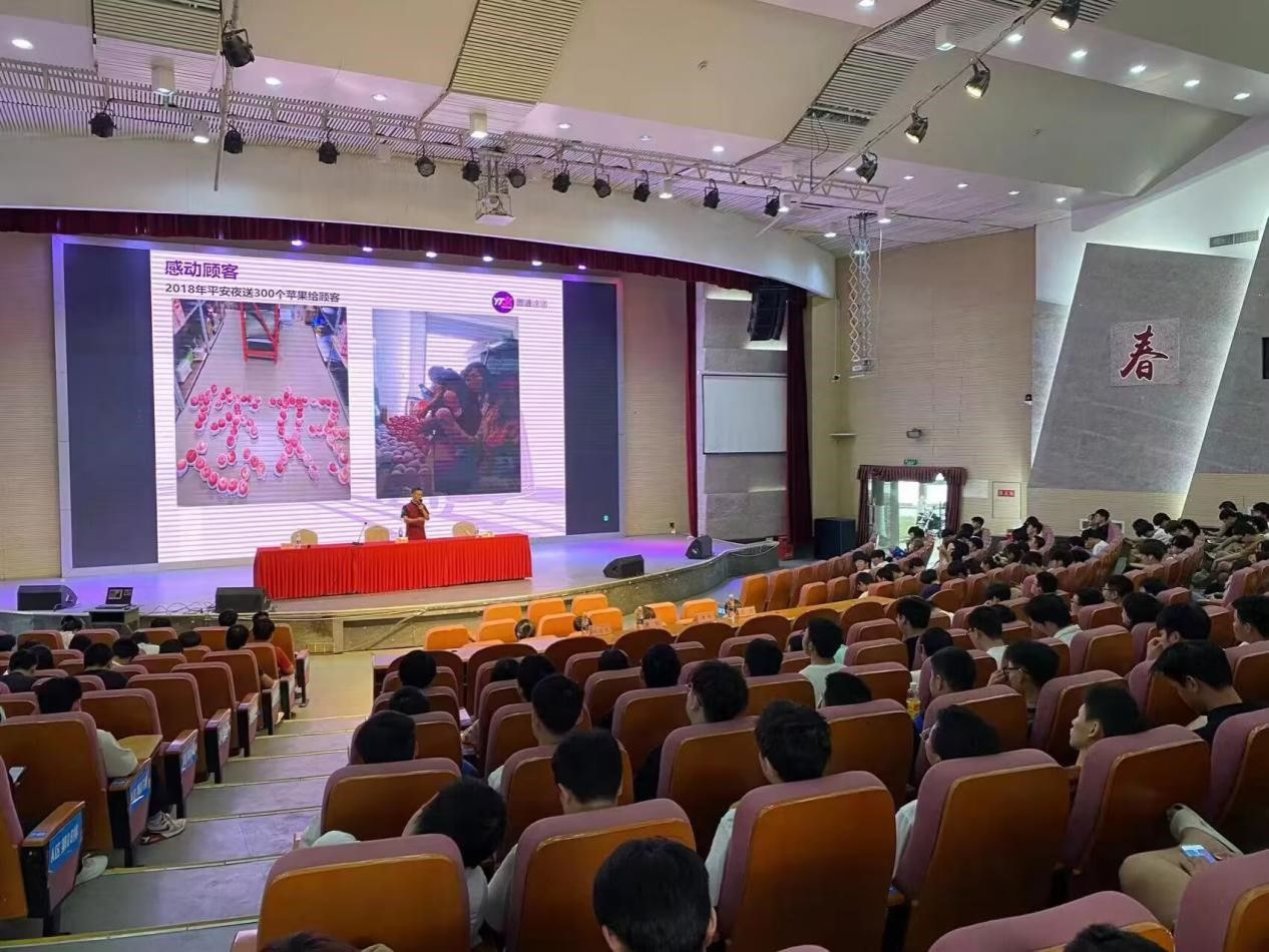 唐建回顾了自己的求学经历,在恩师和同学们的帮助下,他从大一开始就树立学习目标,脚踏实地、积极向上,努力成为同学的榜样并获得了留校资格。在留校工作的12年中,他负责实验室管理工作且从未出过问题。他主动带领员工做校园创业尝试,扎根快递行业。并用亲身实践告诉同学们如何获得客户的认可,如何让客户感动,如何让失去的客户再回来,在遇到客户理赔问题时怎么样来化解矛盾将危机转变成商机。