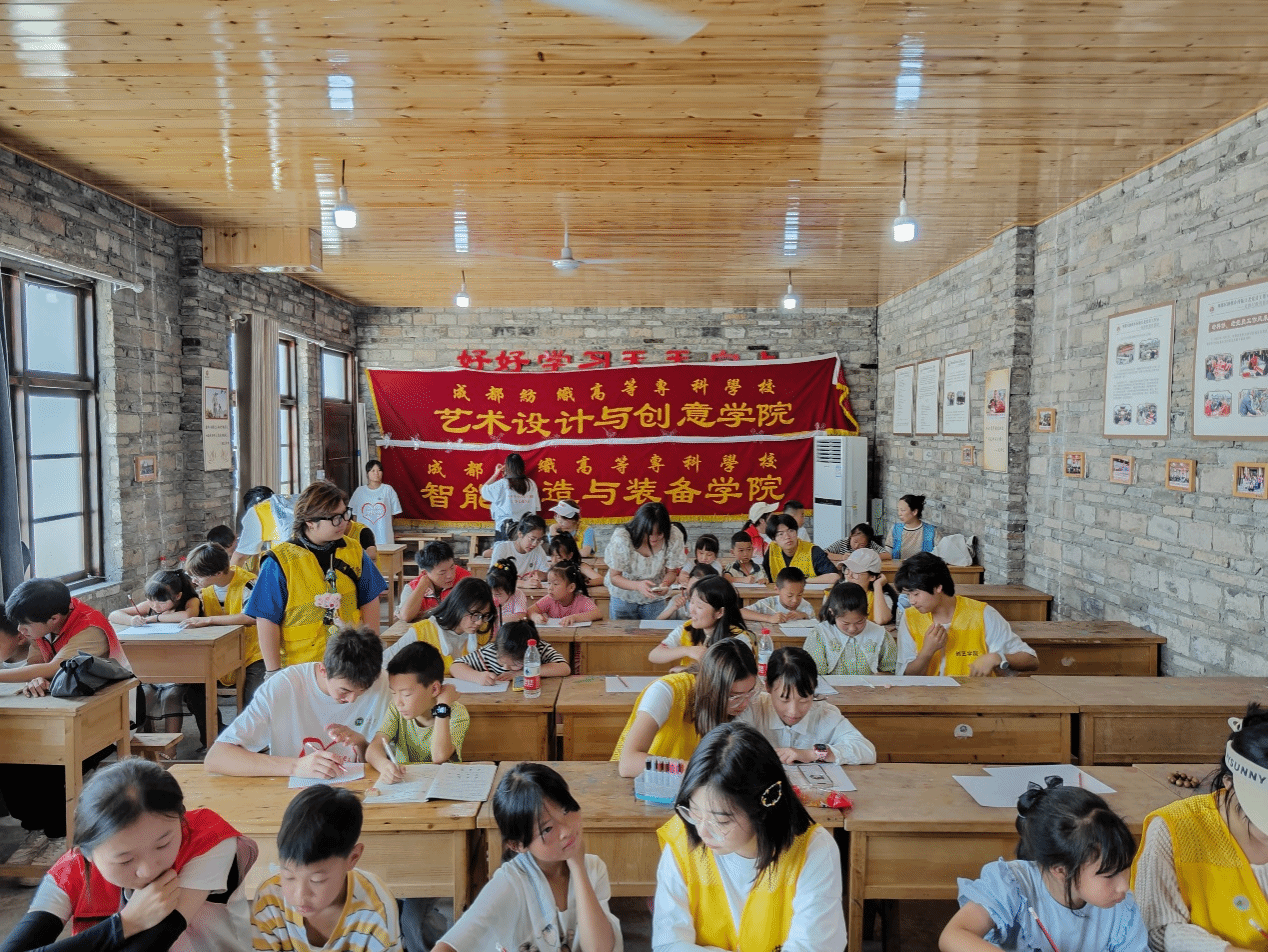 为了促进农村文化建设,改善农村社会风气,密切党群、干群关系,深入贯彻党的二十大精神,大力推进农村精神文明建设,满足广大村民的精神文化生活需求。7月6日,志愿者们纷纷进入工作状态,将小朋友们按年级分成两个小组。1-3年级的小朋友学习绘画,4-6年级的同学学习书法,娱乐环节组织全体小朋友进行唱歌展示。