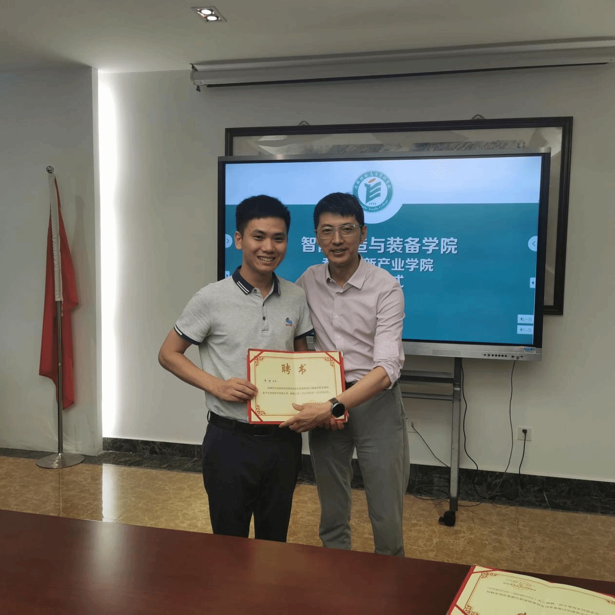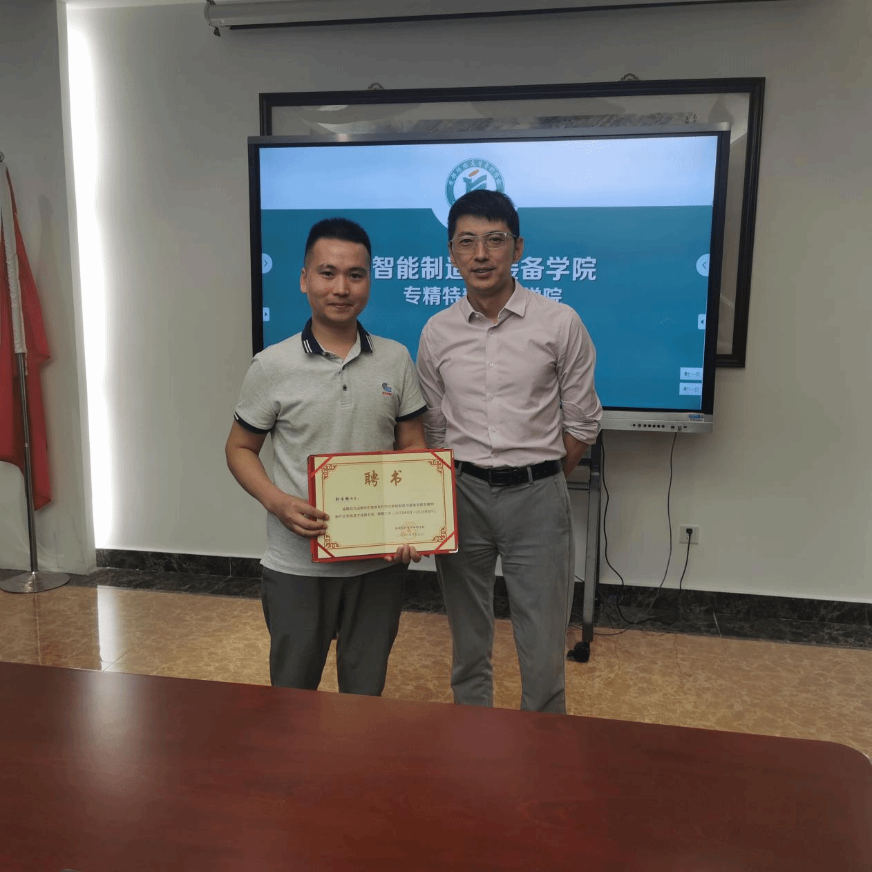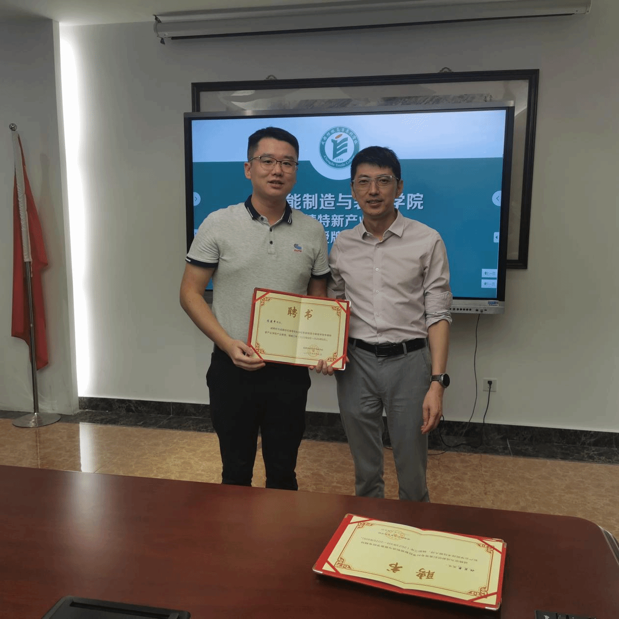 图 6 宋超副董事长向陈建丰颁发专精特新产业公司产业教授聘书