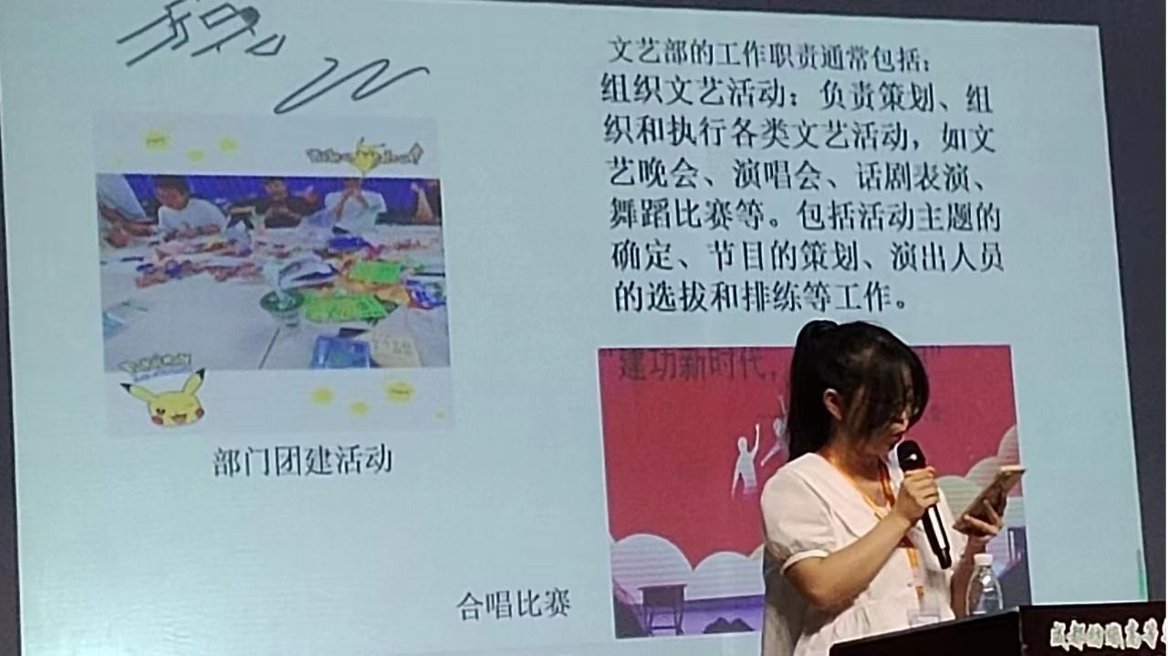 最后,团总支员工会各部门宣讲代表介绍了部门的人员构成、职责分工、工作特色,分享了员工会丰富多彩的活动,呼吁新同学根据自身特长选报部门、参加竞选。