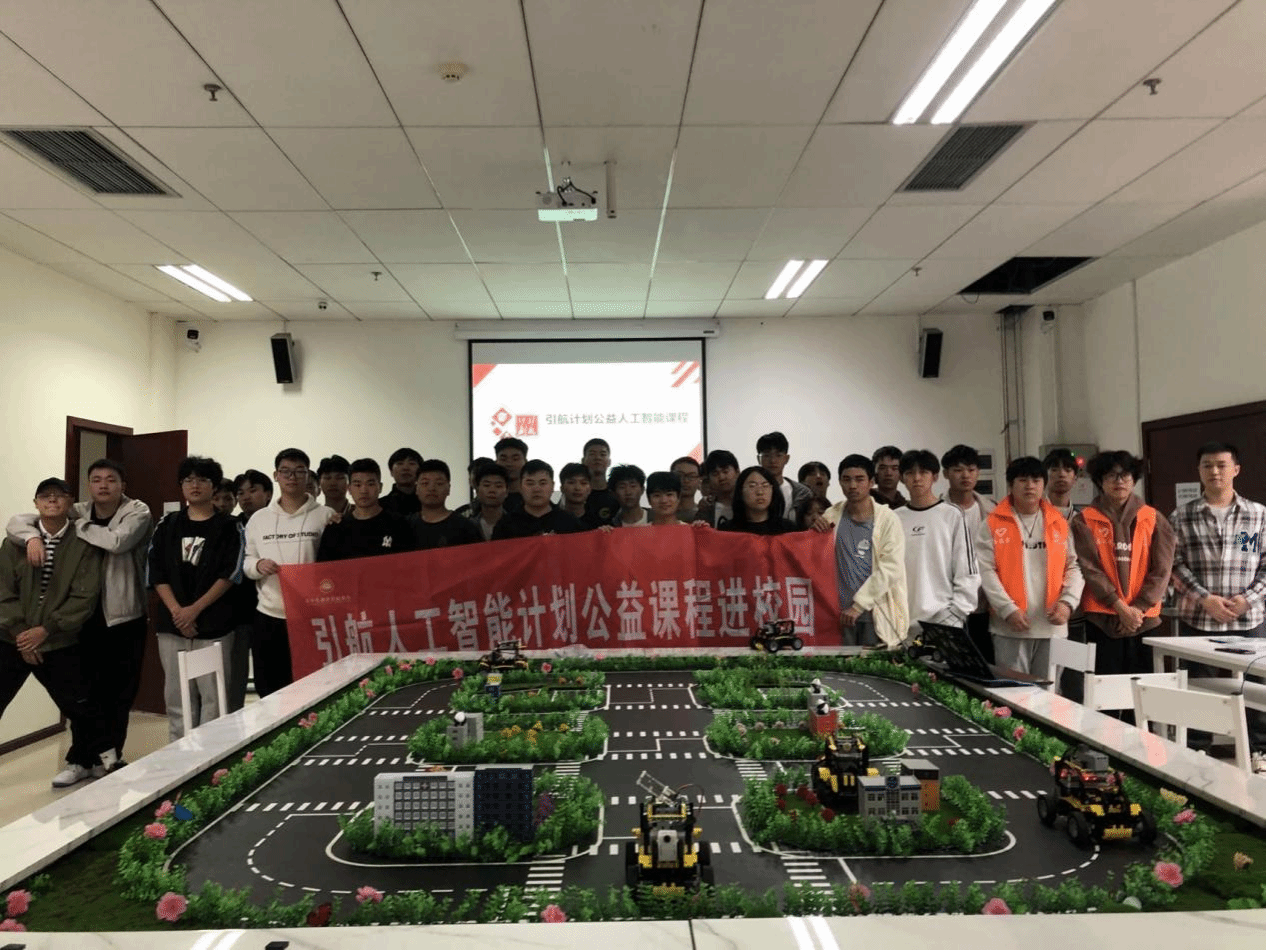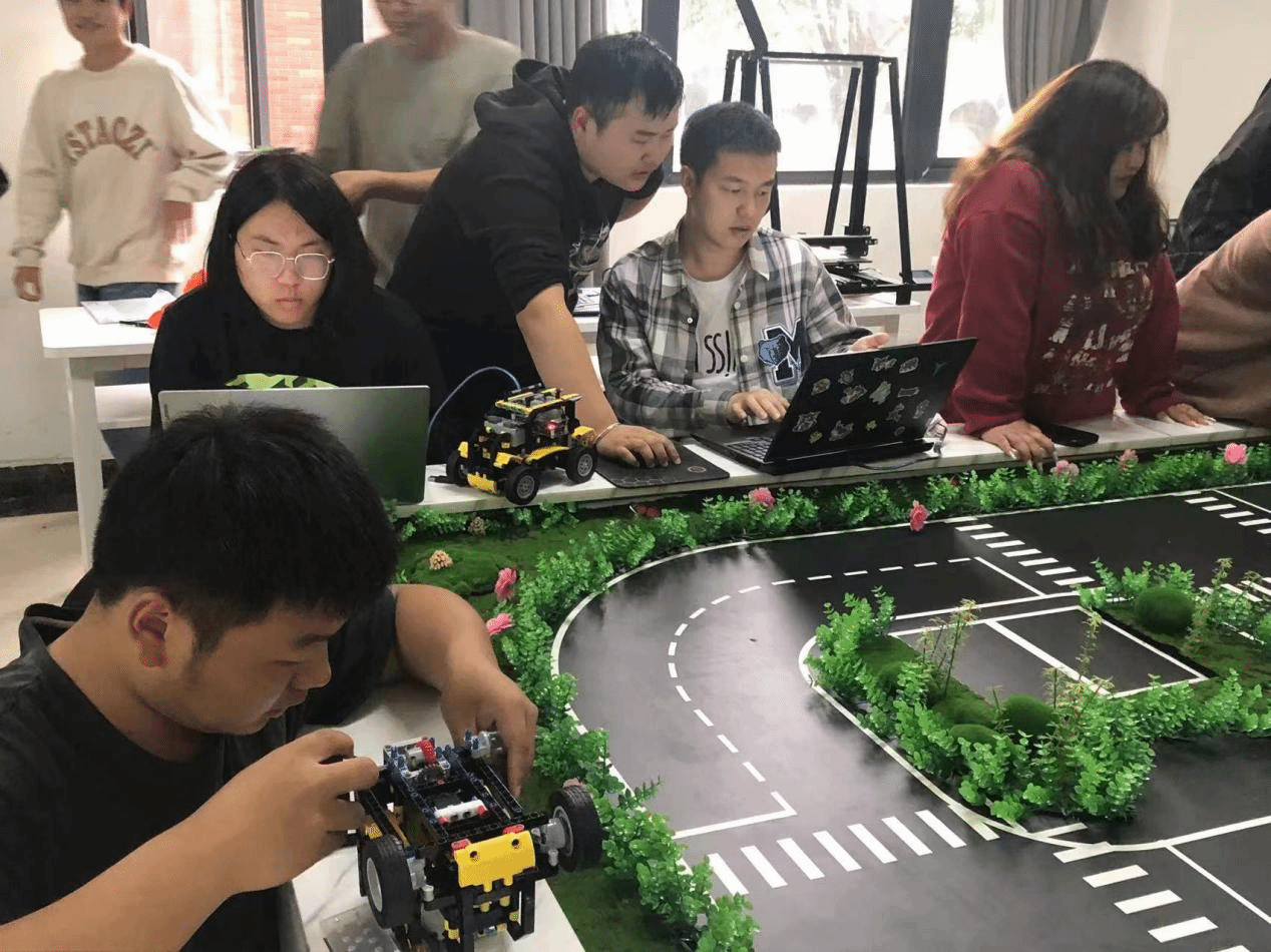 为充分利用课程时间,丰富学习内容,让同学们在有限的实训时间里收获更多的内容,实训老师采用理论+实操的方式开展。在实训老师的讲解下,同学们完成了引航计划在线公益免费课程报名解锁、并完成了项目小组分组,并充分的了解了本次实训流程和学习目标。同学们也在技术老师的带领下进行了智能小车的拼装搭建、代码编写、程序烧录、无人驾驶小车试跑测试及沙盘演练等。