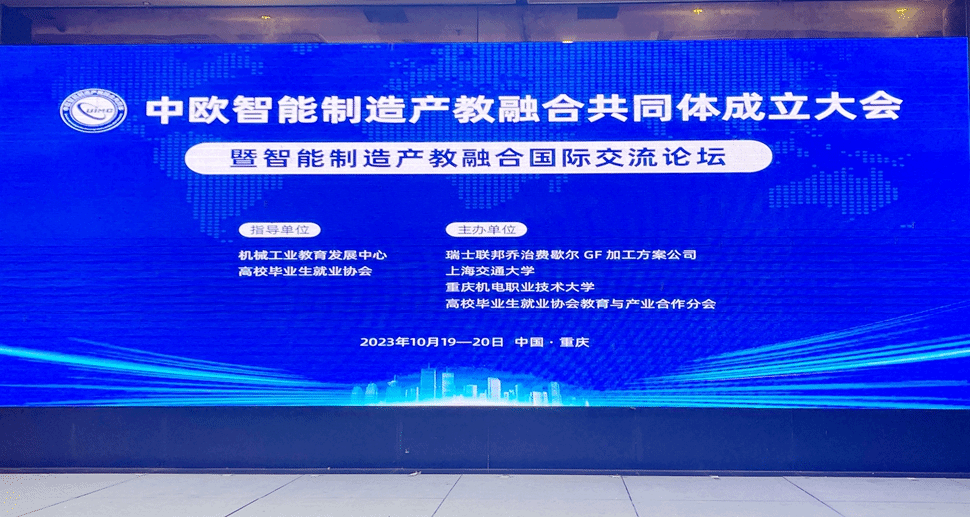 中欧智能制造产教融合共同体是在机械工业教育发展中心和高校毕业生就业协会指导下,由瑞士联邦乔治费歇尔GF加工方案公司、上海交通大学、重庆机电职业技术大学、高校毕业生就业协会教育与产业合作分会牵头组建的产教融合创新平台。